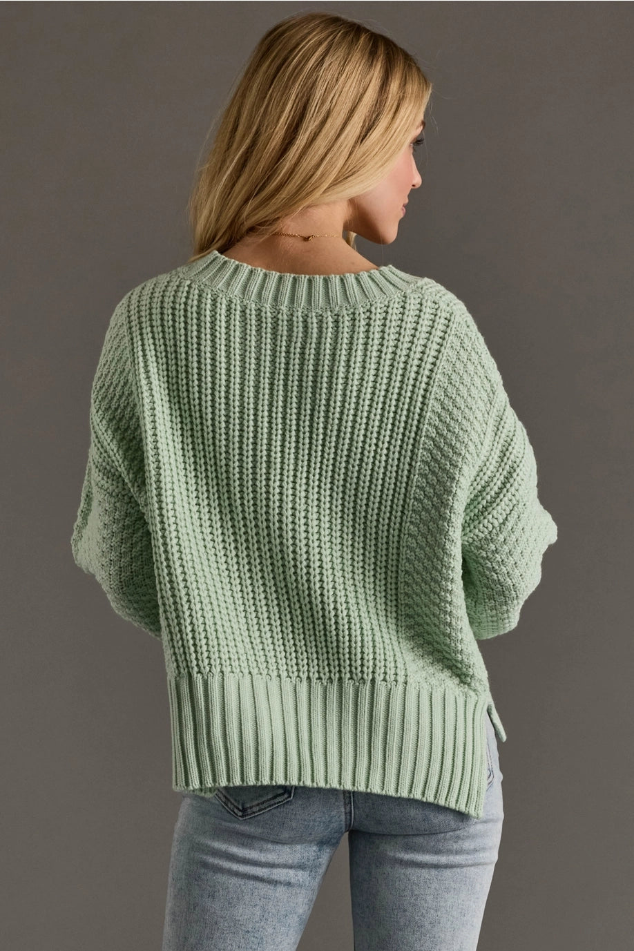 The Mint Knit Cropped Button Up Cardigan features soft textured knit fabric with a relaxed fit, cropped length, and button-up front, complete with ribbed cuffs, hem, and V-neckline for a cozy and effortlessly chic look.